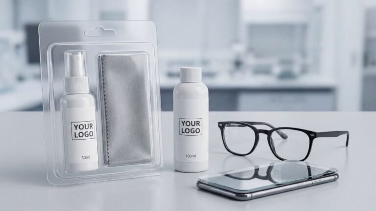 - Marka Uygulama: Tasarım stüdyomuzda logonuzu; şişe etiketlerine, dış kutulara ve mikrofişer bezlere profesyonelce yerleştiriyoruz.